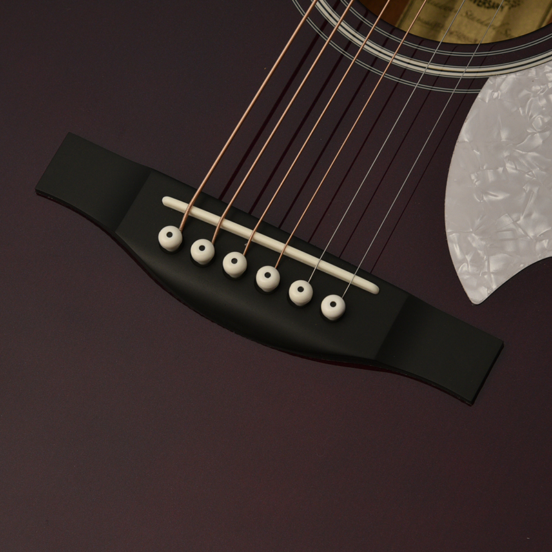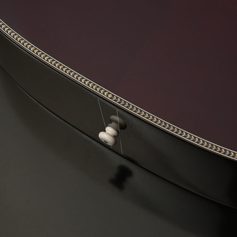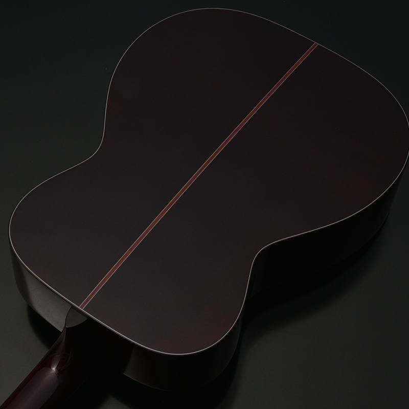 サイド&バックには希少な桜材を使用し、程よい硬質さと力強いアタック感で芯のある音色を生み出し、桜特有の甘みのある中音域が加わることで弾き語りはもちろんのこと、ソロスタイルなどオールラウンドに使用することが出来ます。