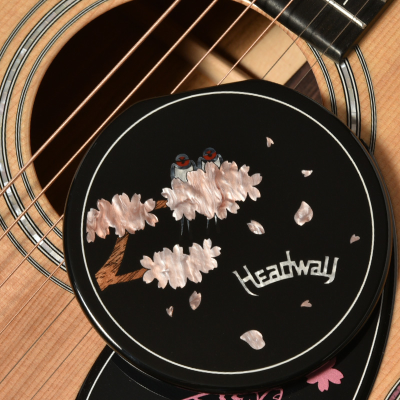 物語の始点となる、満開の桜に止まった2羽のツバメが印象的なサウンドホールカバー。舞い散る桜の花びらが春の到来を感じさせます。