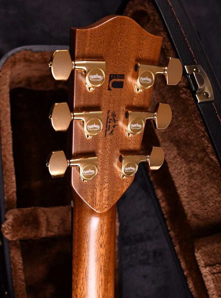従来のHeadwayのネックのイメージを覆す薄さを重視した『Extra Slim U Neck』を採用。Headwayネックの特徴である安定性はもちろん考慮され、カーボンバーを入れる「ハイストレングネック」仕様によって剛性を高めています。カーボンバーの効果は安定性のみでなく、不要なネックのしなりを抑え弦の振動がスムーズにボディトップに伝わることにより、高音域の表現力が向上しています。