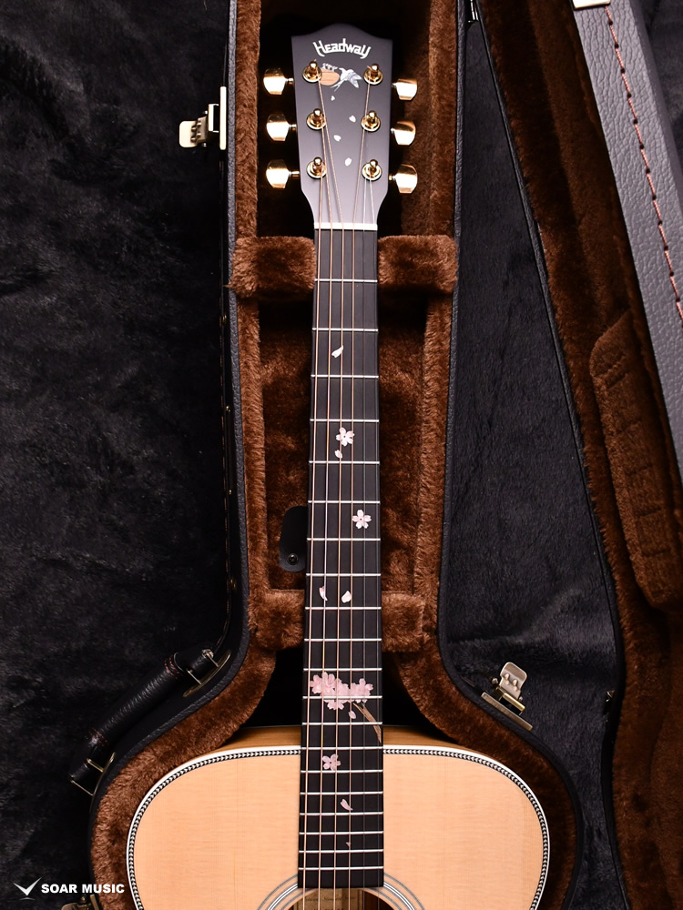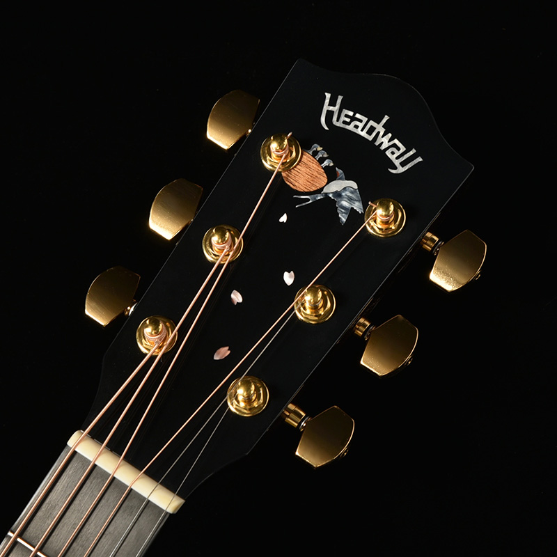 春の渡り鳥として日本人にとってなじみの深いツバメをデザインのモチーフに選びました。Headwayともゆかりのある鳥であり、マスタービルダーの故・百瀬恭夫は毎年春になると工房にやってくるツバメを楽しみにしていました。師への想いと、日本の奥ゆかしい風景に焦点を当てたデザインにより、ギター全体を通してストーリーを感じさせる一本です。