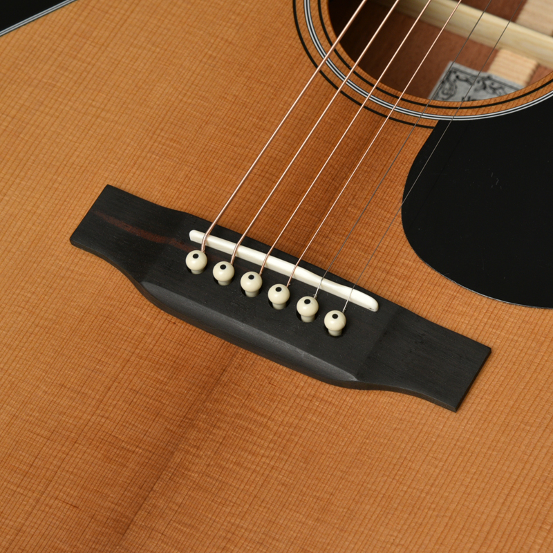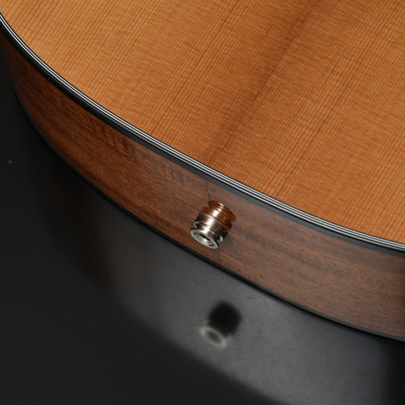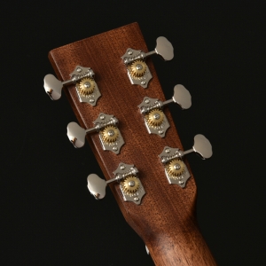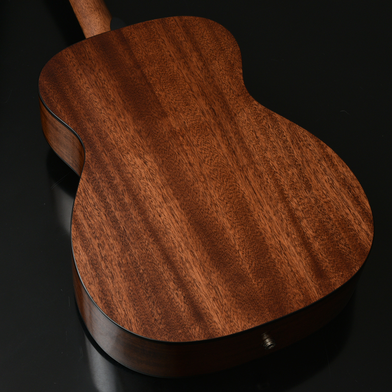 ボディトップはスプルース単板、ボディサイドバックはアフリカンマホガニー単板となっております。オール単板であるため、合板のギターと比べて木材の振動が豊かになり、より本格的なアコーステックサウンドを楽しめます。