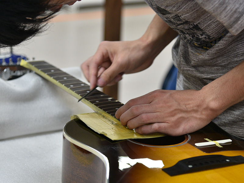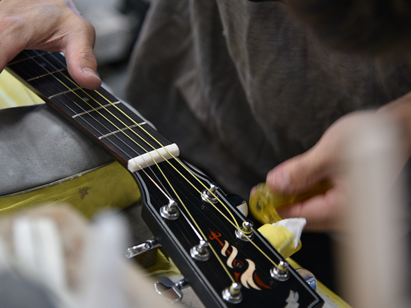 ギターの弾きやすさに大きく関わってくるのが弦高です。JTシリーズのギターは押さえやすさを重視した適正弦高に1本1本丁寧に調整しています。
