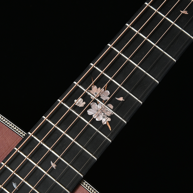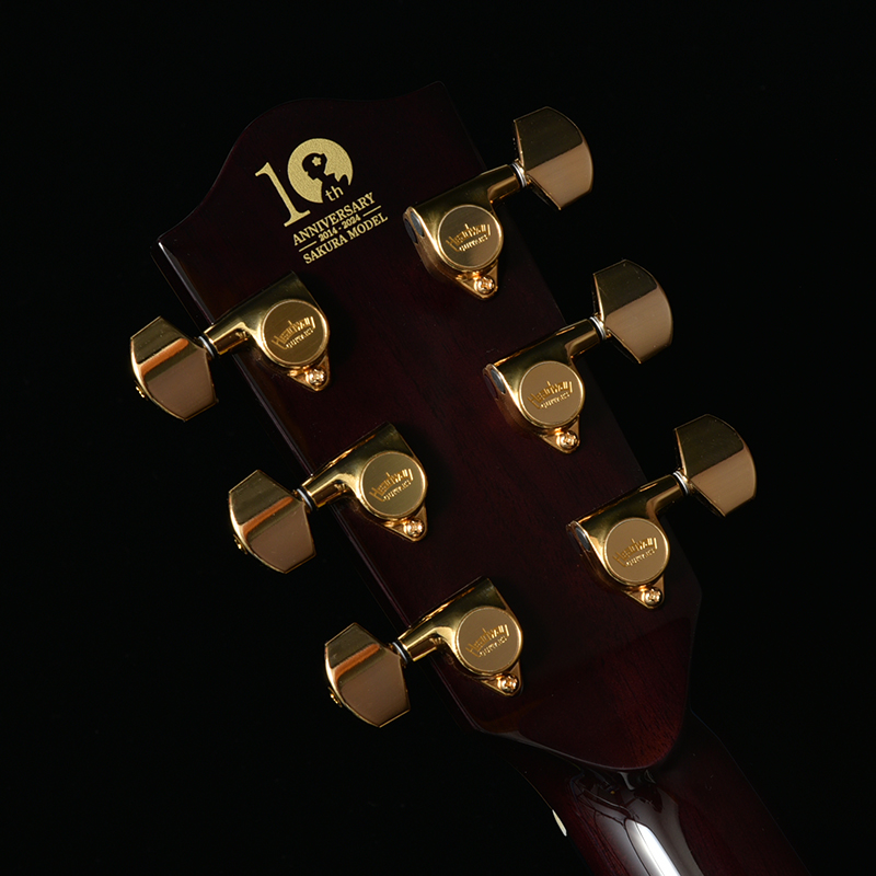 多くのユーザーの皆様に支えられて10周年を迎えた桜ギターへの思いを込めて、ヘッドには縁起を担ぐ存在である「鶴」のインレイをデザインしました。鶴は渡り鳥であるという側面も併せ持っており、日本のみならず、国境を越えて世界中で愛されるギターになって欲しいという願いが込められています。