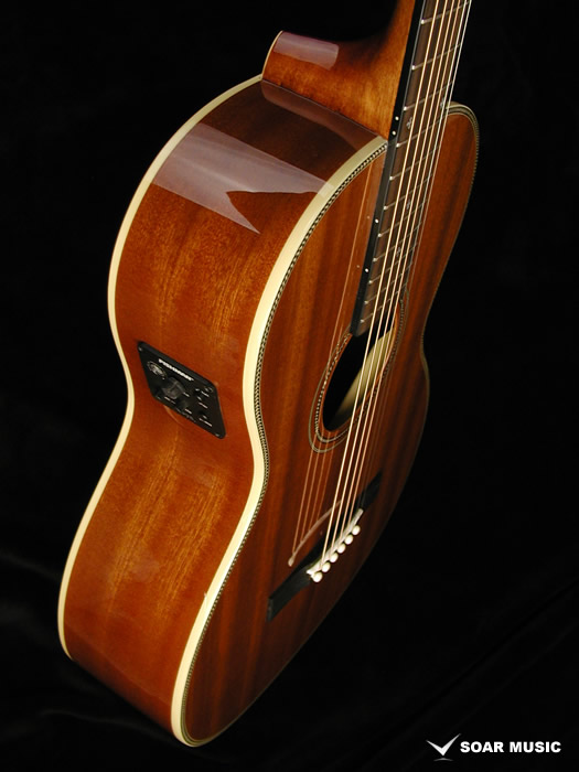 こちらのモデルはボディトップ、サイド&バック材に厳選されたサペリ・マホガニー(合板)を使用しており、ニューヨーカータイプらしい軽快でレスポンスが良く、材の音質特性を加味したマイルドなサウンドが特徴です。