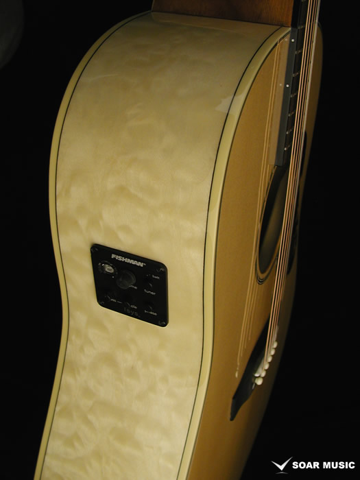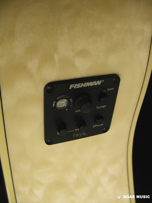 プリアンプにはFISHMAN Isys+(Plus)を搭載しており、ボリュームコントロール、2バンドEQ、フェーズスイッチの他、嬉しいチューナー機能を備えており、生演奏での豊かなサウンドとニーズに合わせてアンプを通しての演奏も可能です。