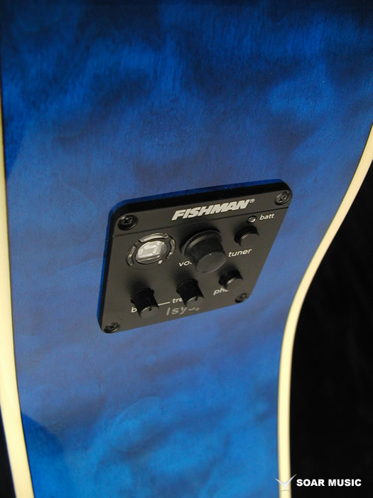 プリアンプにはFISHMAN Isys+(Plus)を搭載しており、ボリュームコントロール、2バンドEQ、フェーズスイッチの他、嬉しいチューナー機能を備えており、生演奏での豊かなサウンドとニーズに合わせてアンプを通しての演奏も可能です。
