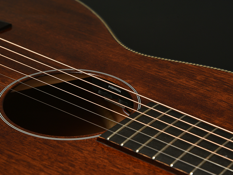 ボディトップ材にはマホガニーを採用。温かみのあるマホガニー特有のサウンドをお楽しみいただけます。