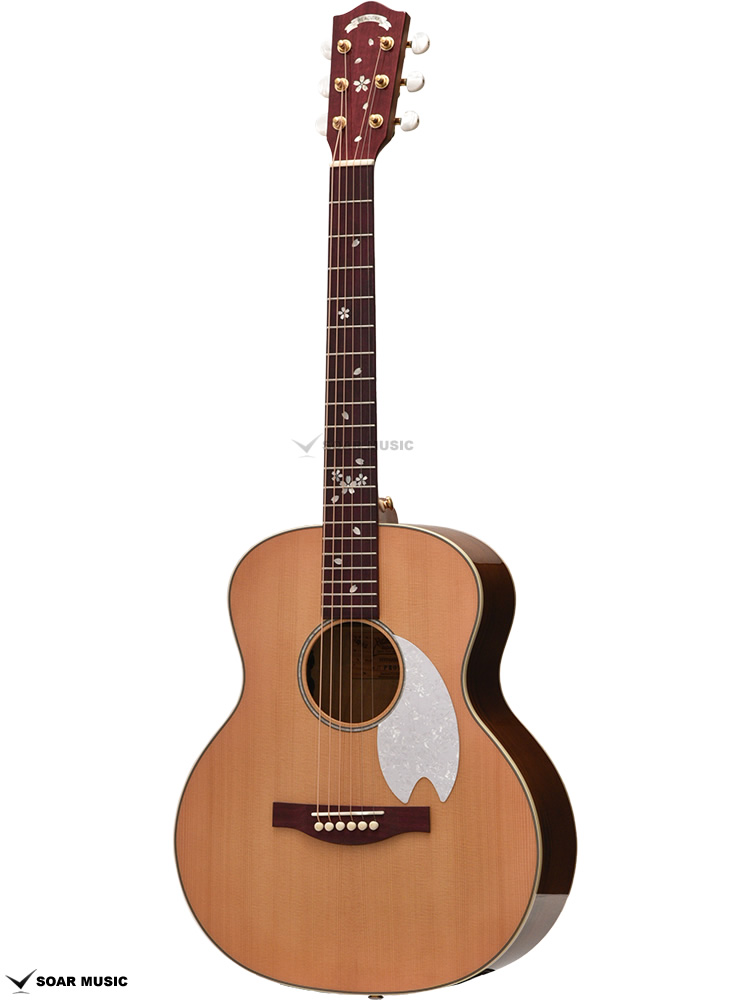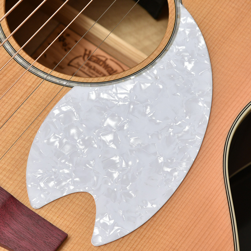ピックガードは桜ギター定番の花びらを型どった印象的なシェイプを採用しており、明るいイメージを与えるホワイトパールを素材にセレクトしております。