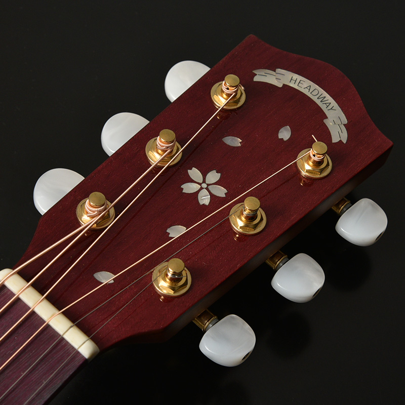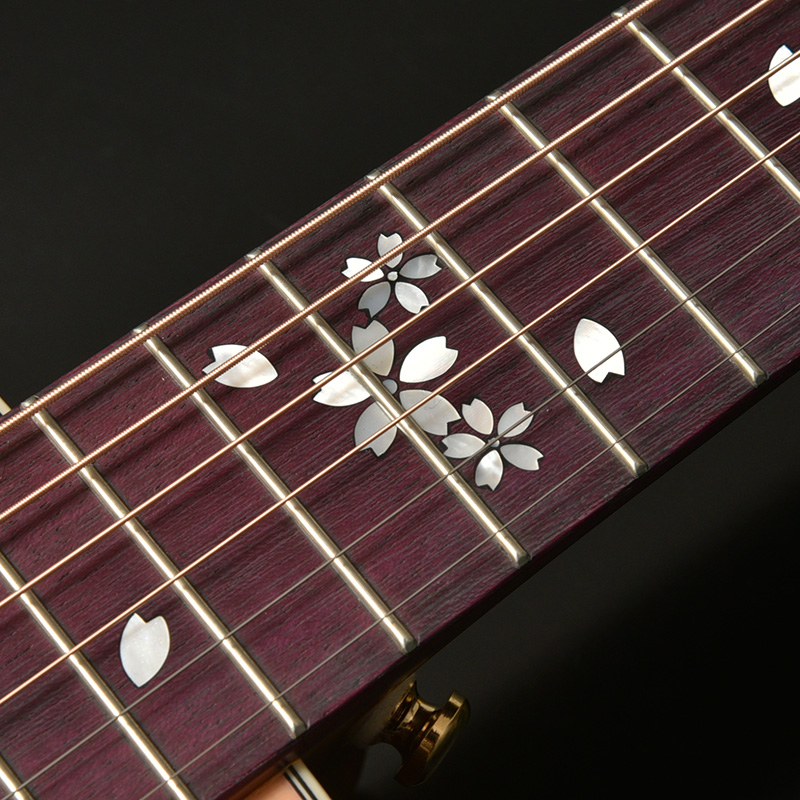 インレイには『桜ギター』であることを象徴する『桜のインレイ』がヘッドトップと指板に散りばめられております。