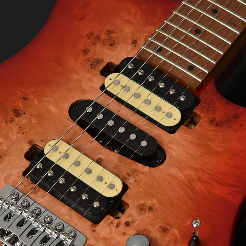 フロントハムバッカーをネックに近い位置、シングルピックアップをSTモデルに近づけた位置、リアハムバッカーをLPモデルに寄せた位置に配置したHSH配列を採用。