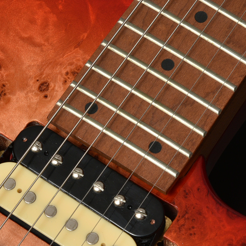 24フレット仕様を採用したことで、音域が広がるため、演奏性も広がります。 ハイポジションを使用したメロディや、スウィープでローからハイまで縦横無尽に一掃するプレイングなどにピッタリ。