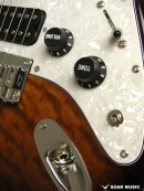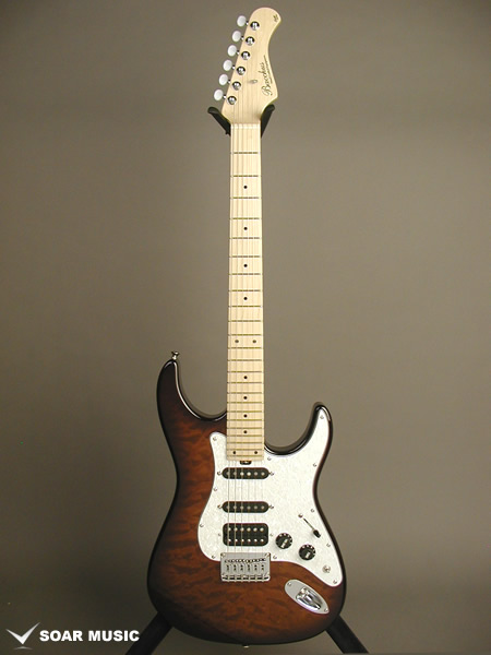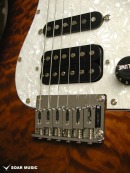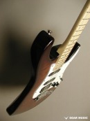 レギュラーモデルはアッシュボディとなりますが、カスタム仕様モデルはアルダーバック、キルテッドメイプルトップボディで音の重心をやや低音域側に置きつつも、 アタックレスポンスを加味した抜けの良いサウンドとなっています。また、ブリッジはGOTOH GTC-102を搭載したハードテイル仕様でソリッドボディの鳴りを活かした芯の通ったメリハリのあるサウンドです。
