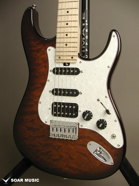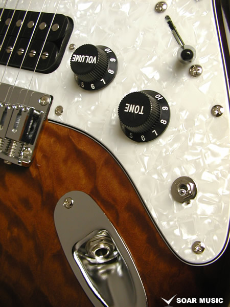 カラーリングはキルトメイプルの木目を活かしたシースルーバーストで仕上げています。