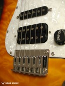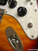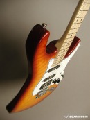レギュラーモデルはアッシュボディとなりますが、カスタム仕様モデルはアルダーバック、キルテッドメイプルトップボディで音の重心をやや低音域側に置きつつも、 アタックレスポンスを加味した抜けの良いサウンドとなっています。また、ブリッジはGOTOH GTC-102を搭載したハードテイル仕様でソリッドボディの鳴りを活かした芯の通ったメリハリのあるサウンドです。