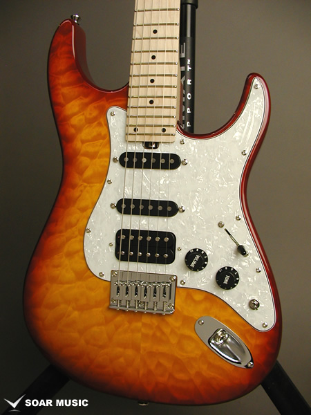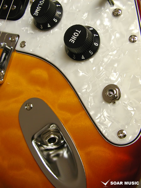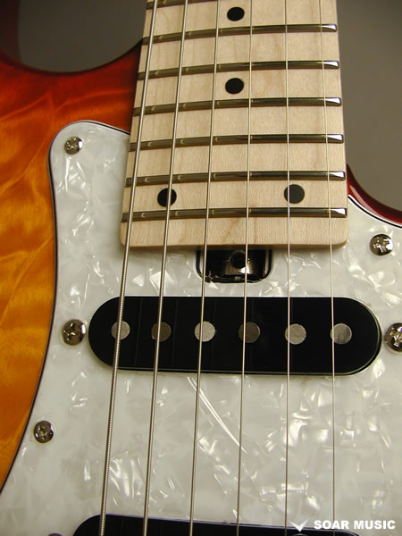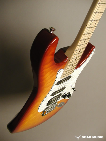 カラーリングはキルトメイプルの木目を活かしたシースルーバーストで仕上げています。