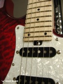 レギュラーモデルはアッシュボディとなりますが、カスタム仕様モデルはアルダーバック、キルテッドメイプルトップボディで音の重心をやや低音域側に置きつつも、 アタックレスポンスを加味した抜けの良いサウンドとなっています。また、ブリッジはGOTOH GTC-102を搭載したハードテイル仕様でソリッドボディの鳴りを活かした芯の通ったメリハリのあるサウンドです。