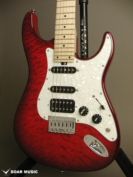 カラーリングはキルトメイプルの木目を活かしたシースルーバーストで仕上げています。