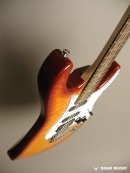 レギュラーモデルはアッシュボディとなりますが、カスタム仕様モデルはアルダーバック、キルテッドメイプルトップボディで音の重心をやや低音域側に置きつつも、 アタックレスポンスを加味した抜けの良いサウンドとなっています。また、ブリッジはGOTOH GTC-102を搭載したハードテイル仕様でソリッドボディの鳴りを活かした芯の通ったメリハリのあるサウンドです。