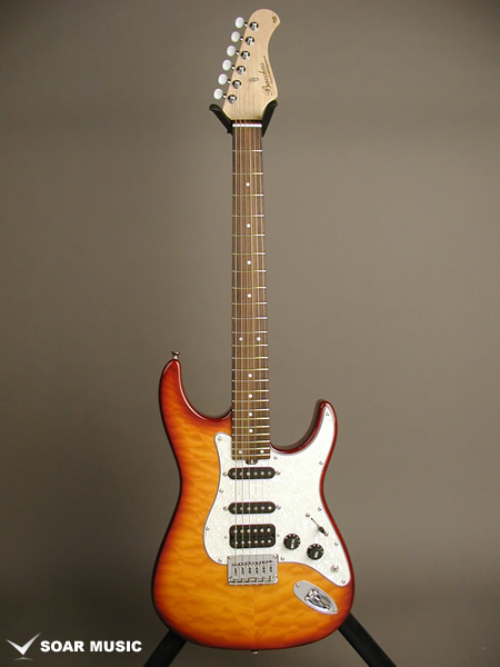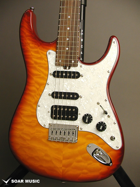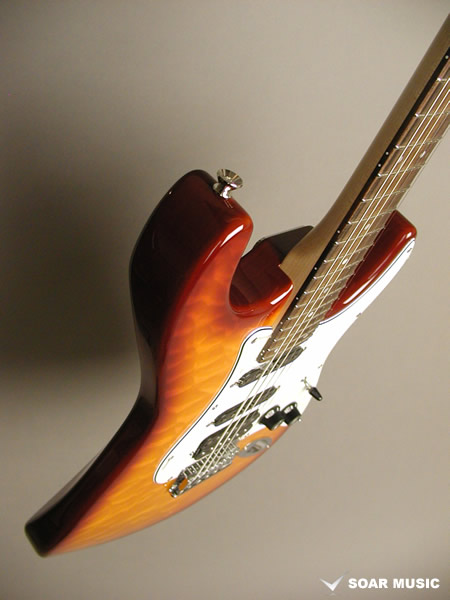 カラーリングはキルトメイプルの木目を活かしたシースルーバーストで仕上げています。