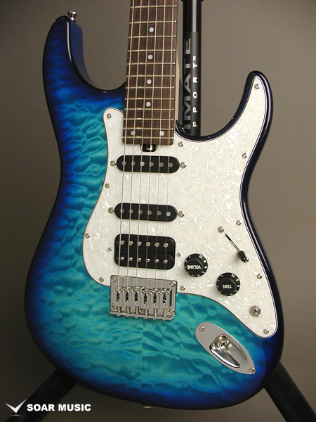 レギュラーモデルはアッシュボディとなりますが、カスタム仕様モデルはアルダーバック、キルテッドメイプルトップボディで音の重心をやや低音域側に置きつつも、 アタックレスポンスを加味した抜けの良いサウンドとなっています。また、ブリッジはGOTOH GTC-102を搭載したハードテイル仕様でソリッドボディの鳴りを活かした芯の通ったメリハリのあるサウンドです。