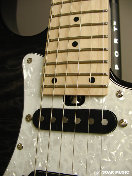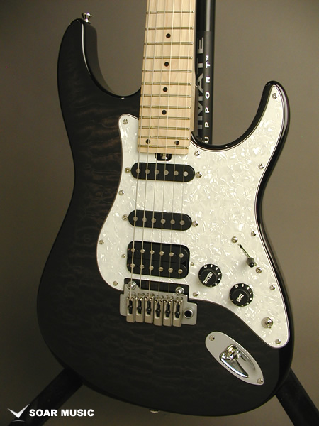レギュラーモデルはアッシュボディとなりますが、カスタム仕様モデルはアルダーバック、キルテッドメイプルトップボディで音の重心をやや低音域側に置きつつも、 アタックレスポンスを加味した抜けの良いサウンドとなっています。