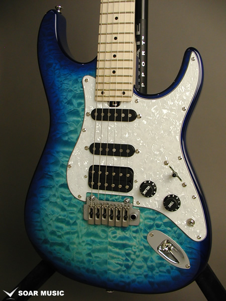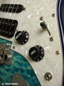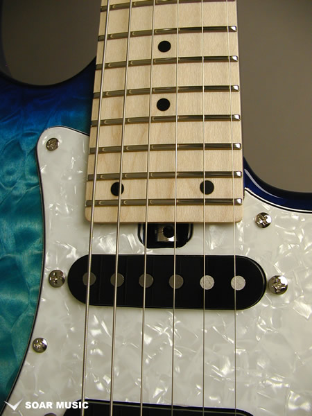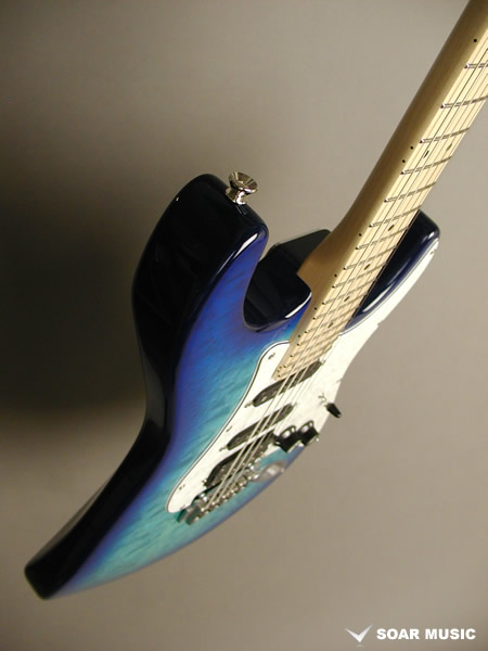 レギュラーモデルはアッシュボディとなりますが、カスタム仕様モデルはアルダーバック、キルテッドメイプルトップボディで音の重心をやや低音域側に置きつつも、 アタックレスポンスを加味した抜けの良いサウンドとなっています。