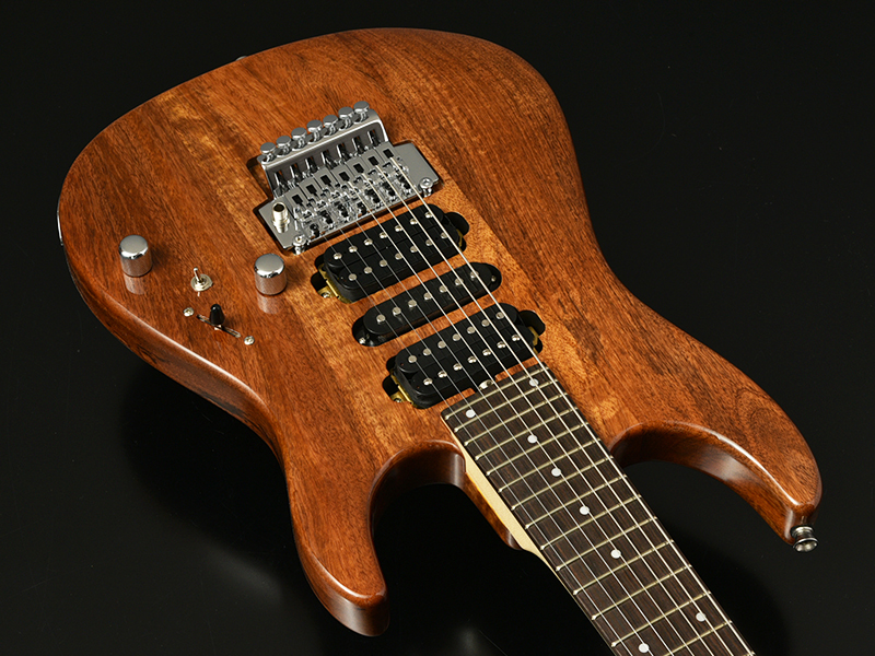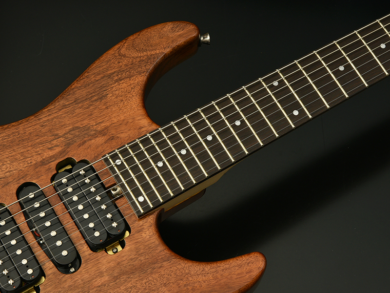 重厚感、攻撃的な見た目が多い7弦ギターですが、こちらは幅広い音楽ジャンルにマッチングする落ち着いた雰囲気に仕上げています。