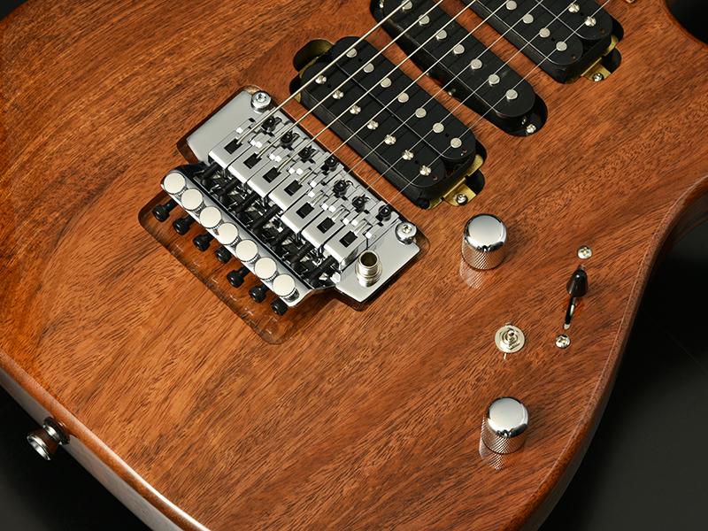 ピックアップはHSHのレイアウトでフロント/リアのハムバッキングのコイルタップスイッチを搭載。