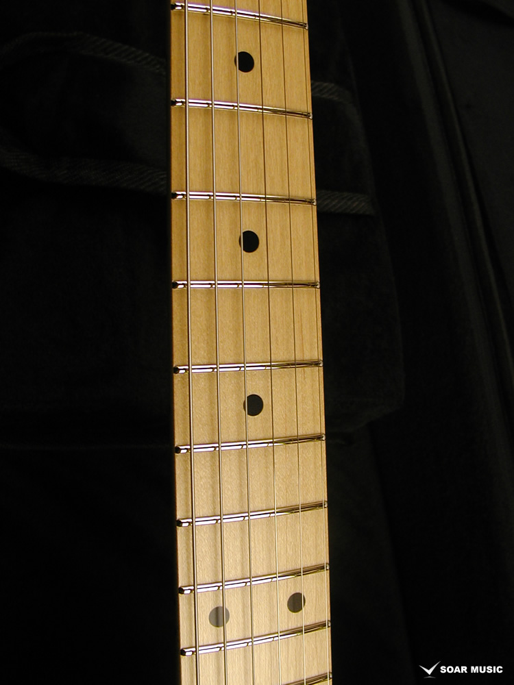 指板サイドには指板と同材を使用したウッドバインディングが施されています。これにより指板サイドが非常に滑らかになり、フレットの「バリ」トラブルも防止します。