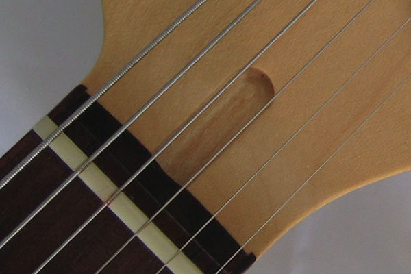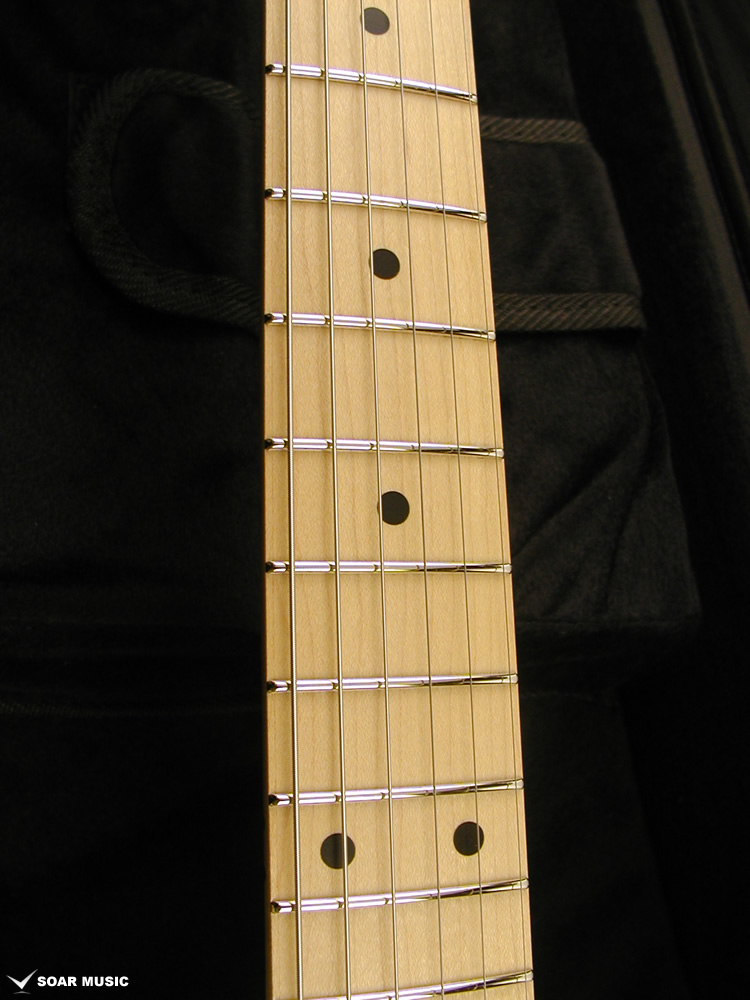 指板サイドには指板と同材を使用したウッドバインディングが施されています。これにより指板サイドが非常に滑らかになり、フレットの「バリ」トラブルも防止します。