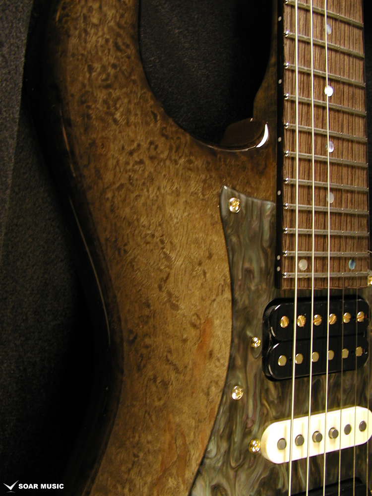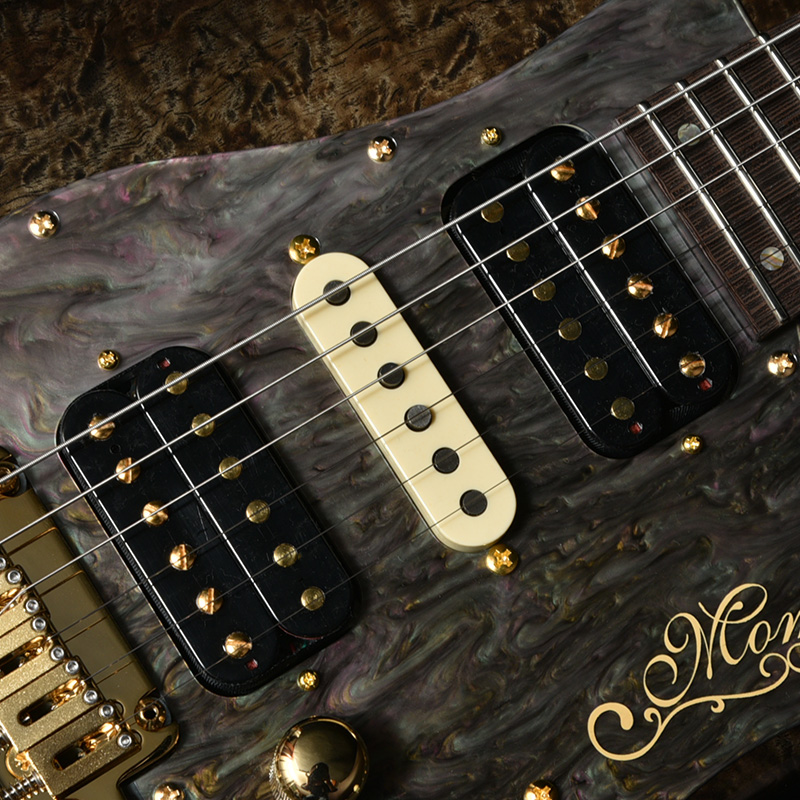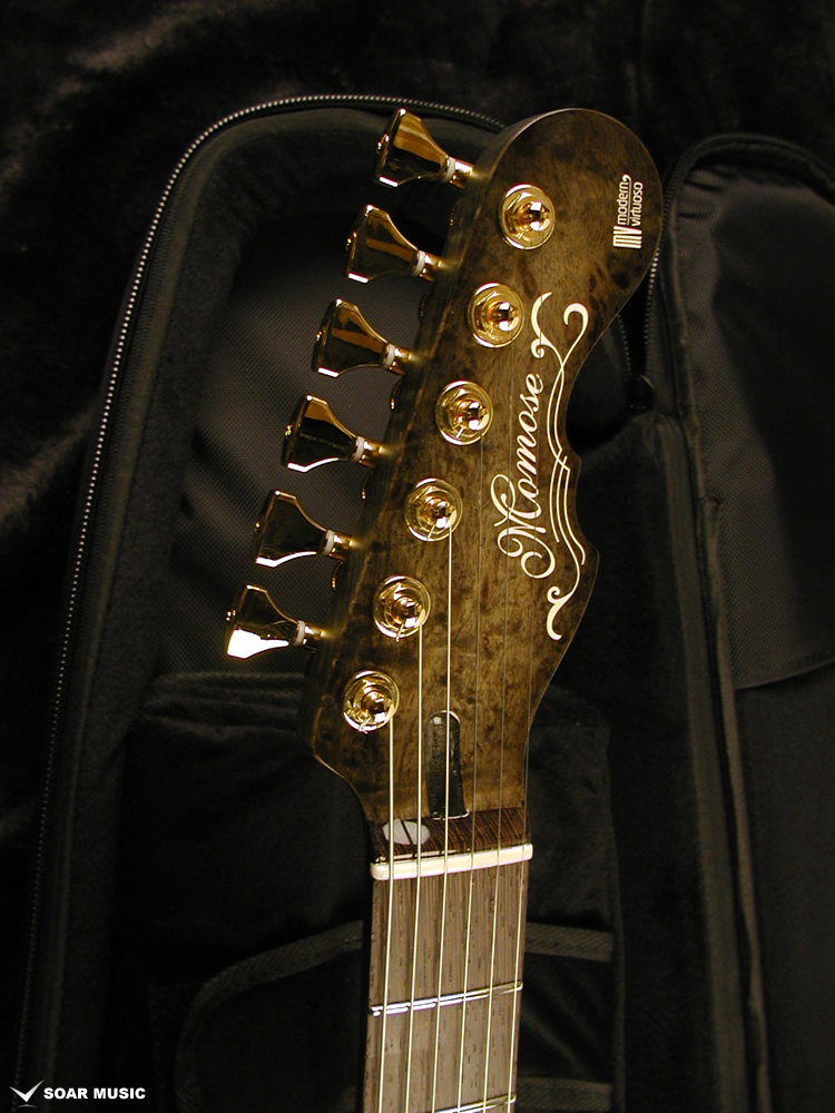 シリーズ名に含まれる『Virtuoso』とは芸術の(特に音楽の)名人、名手、大家、巨匠、という意味を持つ英語です。誰もが自分の音楽を表現し、発信できるようになった現代に求められる仕様を、Momose独自の解釈により盛り込みました。Hipshot® Glip-Lockペグの搭載やGOTOH®製のアーミングに優れたブリッジの新採用など、ハードウェアも一新されています。