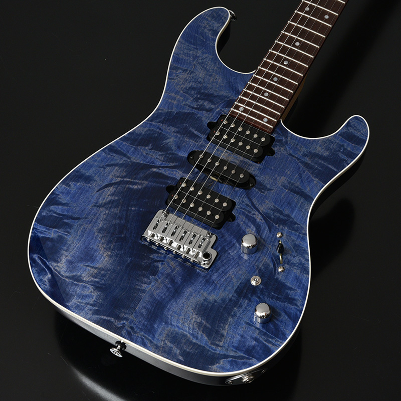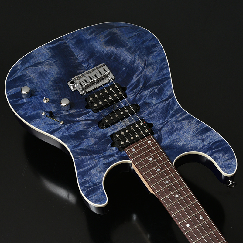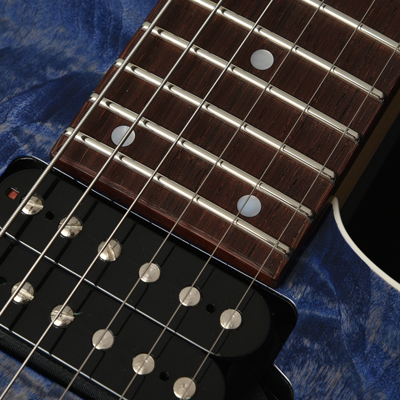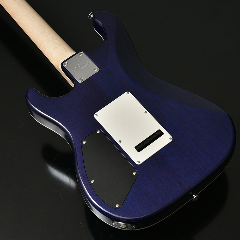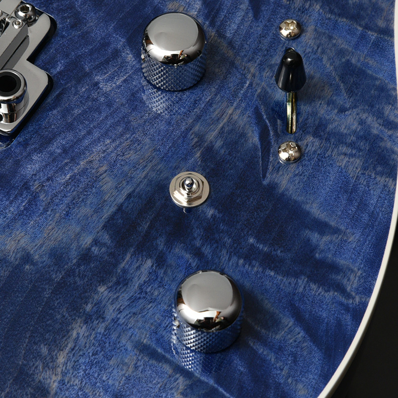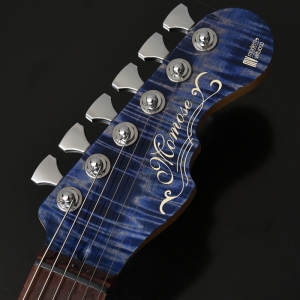 カラーリングはフレイム栃を活かした生地着塗装にてシースルーブルーとブルーグラーデーションの2色をご用意いたしました。 ハードウェアには、Hipshot製のロックペグ、GOTOH製の2点支持ブリッジを搭載しております。