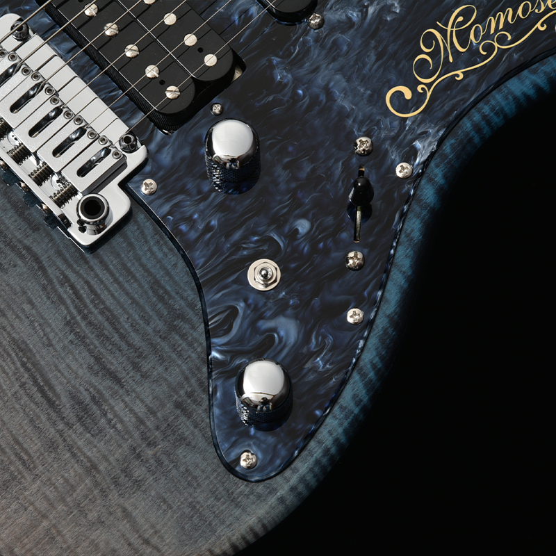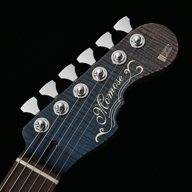 シリーズ名に含まれる『Virtuoso』とは芸術の(特に音楽の)名人、名手、大家、巨匠、という意味を持つ英語です。誰もが自分の音楽を表現し、発信できるようになった現代に求められる仕様を、Momose独自の解釈により盛り込みました。Hipshot® Glip-Lockペグの搭載やGOTOH®製のアーミングに優れたブリッジの新採用など、ハードウェアも一新されています。