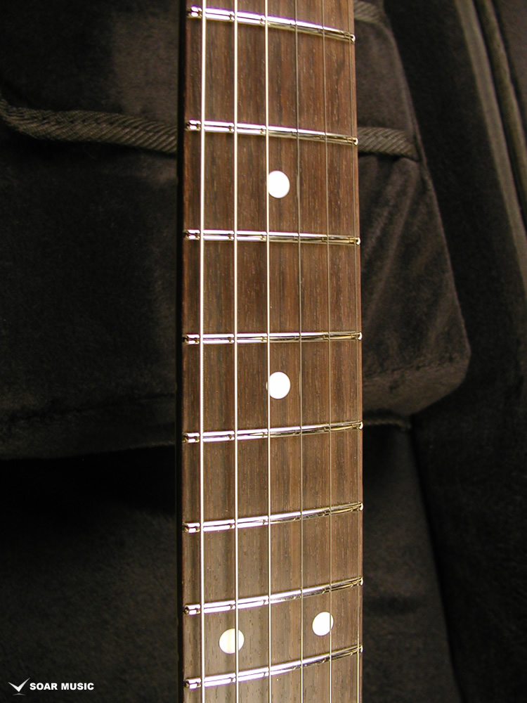 指板サイドには指板と同材を使用したウッドバインディングが施されています。 これにより指板サイドが非常に滑らかになるほか、フレットのバリが飛び出してしまうようなトラブルも防止します。