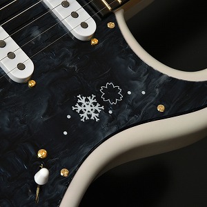ピックガードも本機の冬の夜の雰囲気に合わせ特注したブルーカラーのピックガードを採用。 叢雲のような水面のような、揺れる柄が冬桜モデルの魅力を引き立てます。