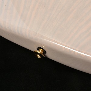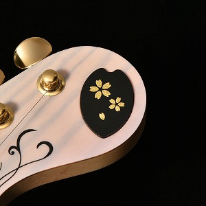 ボディの桜材と同じ石川県を代表する伝統工芸のひとつ「金沢箔」をあしらったワンポイントをヘッドにデザインしました。金沢で金箔工芸の技を継承する「箔一(はくいち)」とのコラボレーションにより実現したもので、金箔を施した桜型のベークライトを埋め込むことで立体感のある仕上がりです。