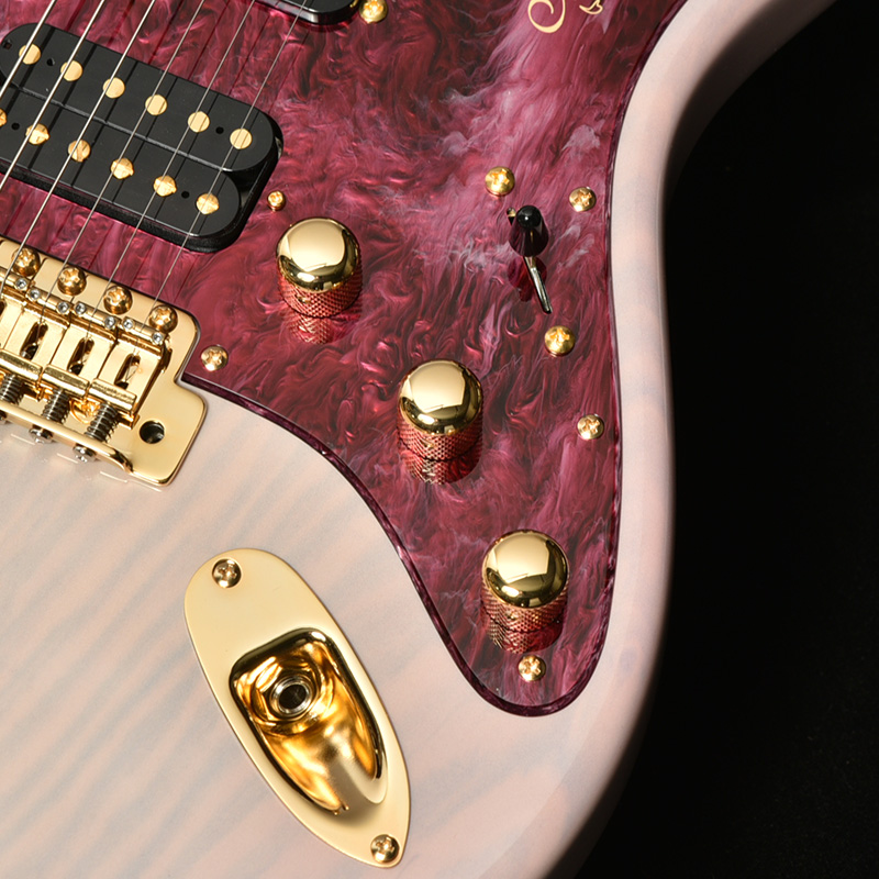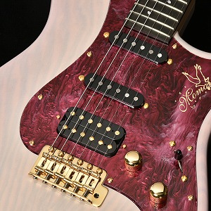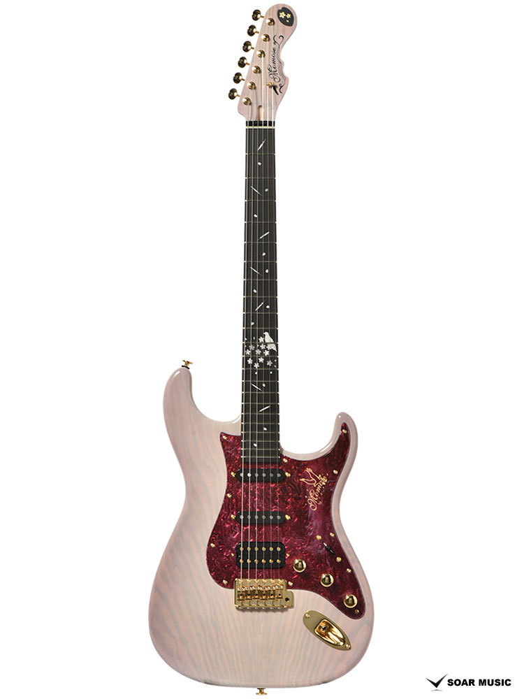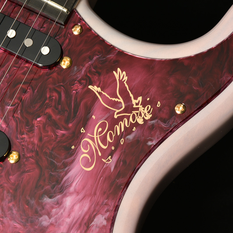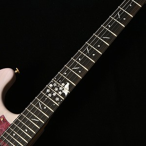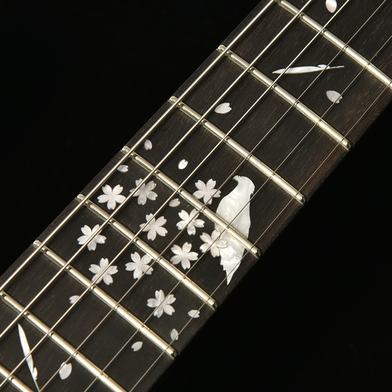 エボニー指板には桜の花びらとともに、石川県の県鳥として知られるイヌワシをイメージしたインレイが装飾されました。その見た目から「ゴールデンイーグル」とも呼ばれる日本最大のワシで、ピックガードとヘッドのロゴにもさりげなくこの二つのデザインが取り入れられています。