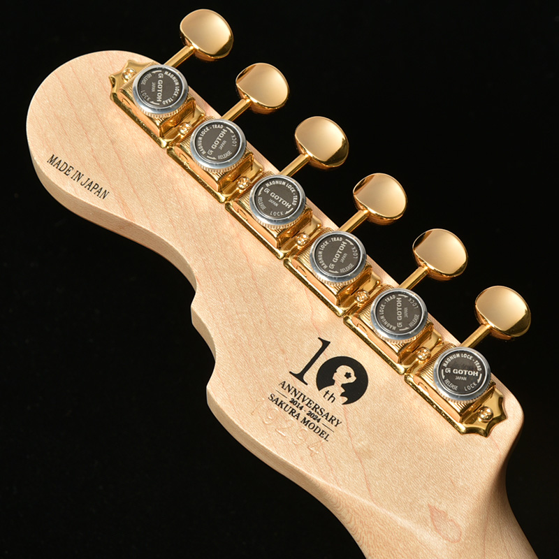 ヘッド裏側には、桜ギター10周年記念モデルであることを証明する限定ロゴがシルクプリントされます。