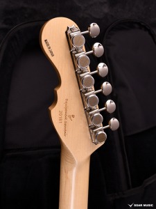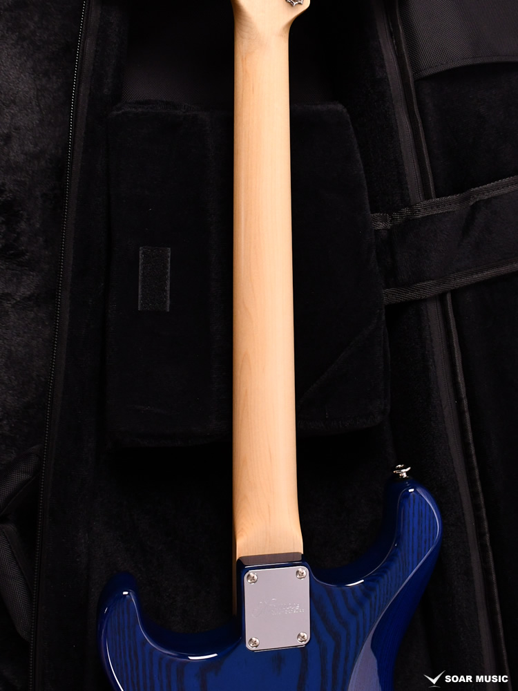極薄のトップラッカー仕上げにより、ボディの鳴りを最大限に活かし、さらに視覚的にも杢目を際立たせるシースルーブルーを採用。ブルーブラックの深みのあるピックガードとの組み合わせが、唯一無二の存在感を放ちます。