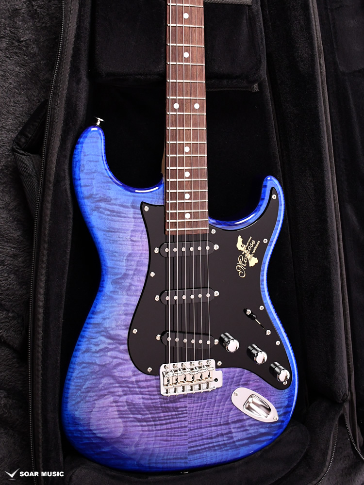 和材の中でも桜と人気を二分する「栃(トチ)」を使用したシリーズより、石川県産の美しいフレイムトチをボディトップに採用した限定機種が登場します。アジサイを思わせる「Hydrangea Blue Burst」と名付けられたカラーは、日本らしい印象を持ちながらトチのフレイム杢を一段と輝かせる絶妙な色合いです。