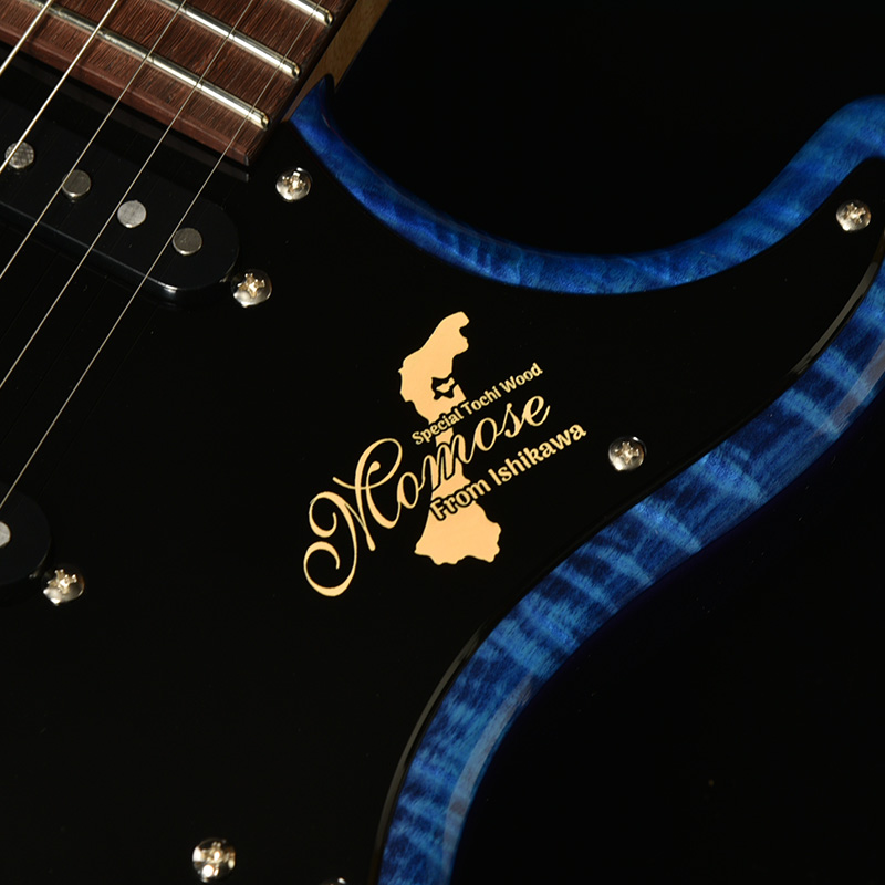 ピックガードのMomoseロゴは、石川県産のトチ材を使用していることを伝える特別なデザインとなっています。