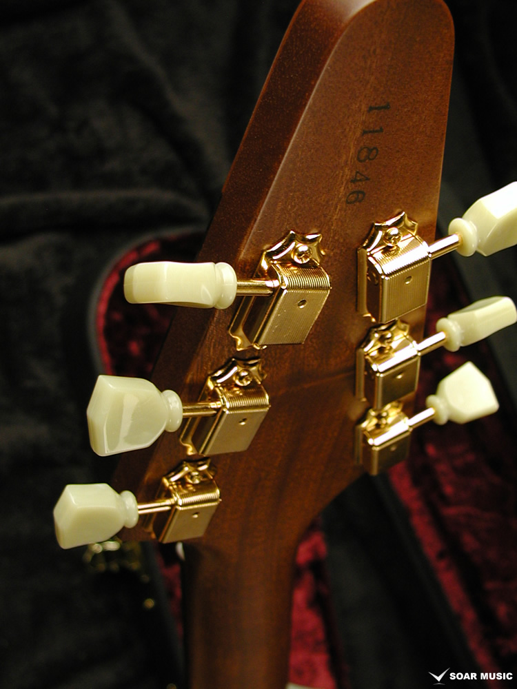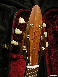 個性的な杢目を持つクロッチマホガニーをボディトップ に使用したモデルです。ヘッド形状はオリジナルデザインで突き板の中央にはボディトップ 同様クロッチマホガニーを使用しています。 ピックガードはインディアンローズウッドを使用しウッドクラフトの美しさをを高め個性を主張しています。ピックアップはMOJOTONE CLASSIC HUMBUCKERを使用しています。