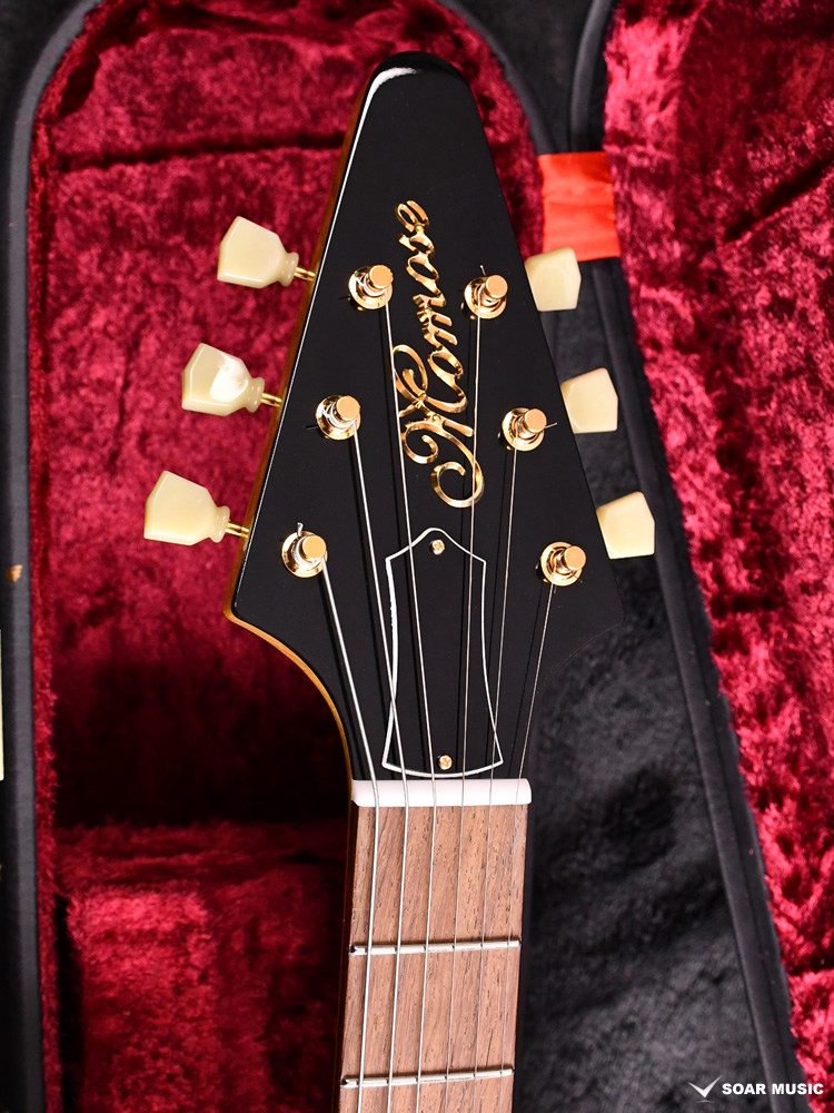 変形ギターの元祖とも呼ばれている58年のフライングVスタイルを基に制作されており、ボディ、ネックには厳選されたコリーナ材、指板には硬質でハカランダに近いサウンド特性を持つマダガスカル・ローズウッド材が使用されています。