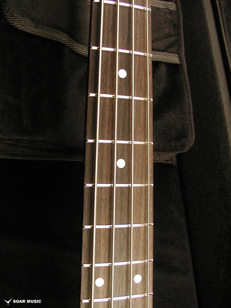 指板にはインディアンローズウッド材が使用されており、メイプル指板と比べ中音域に粘りのある特徴ですが、比較的硬めな材となり、どっしりとしつつも抜けの良いタイトなサウンドが特徴です。
