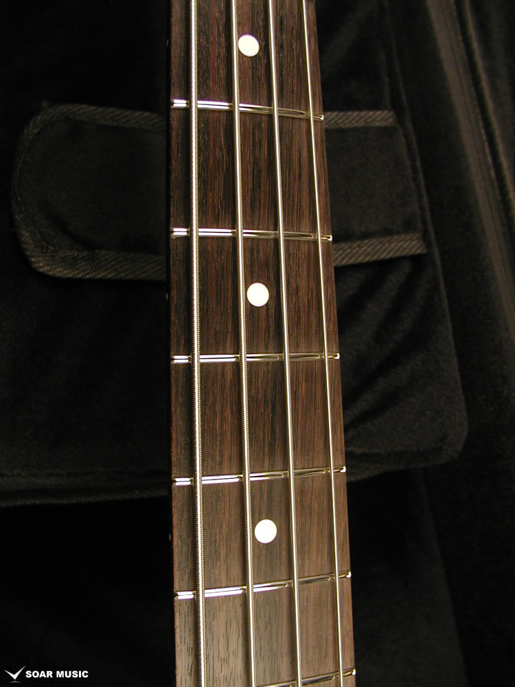 指板にはインディアンローズウッド材が使用されており、メイプル指板と比べ中音域に粘りのある特徴ですが、比較的硬めな材となり、どっしりとしつつも抜けの良いタイトなサウンドが特徴です。