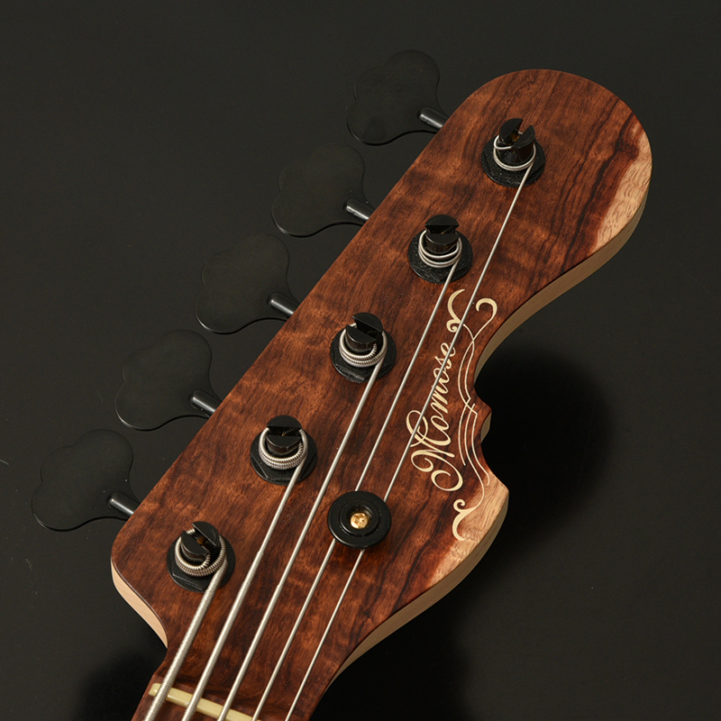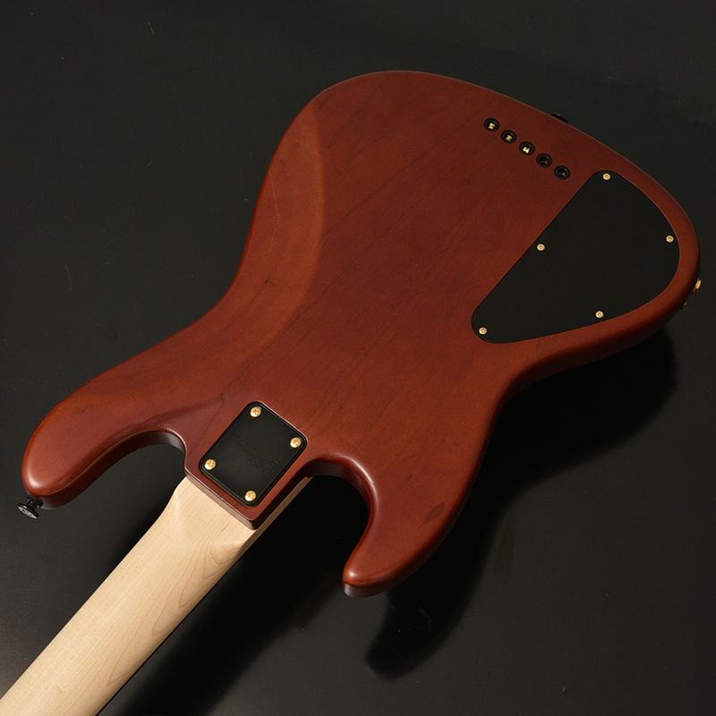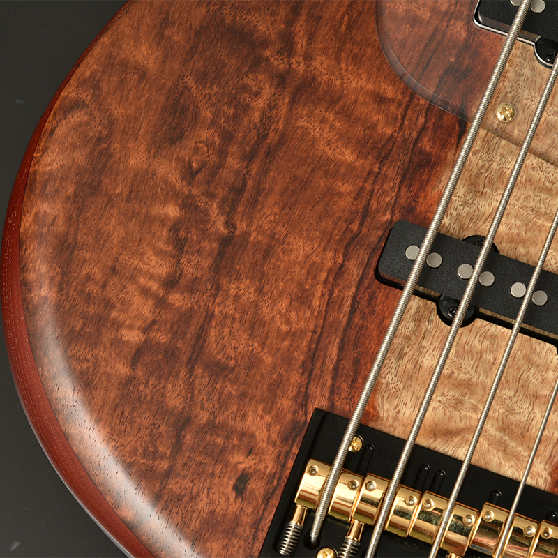ボディトップと指板に独特な杢が出ているバーニングローズを採用しています。プリアンプはOBP-2を使用し、プリアンプのオンオフスイッチとパッシブトーンを付けパッシブでもアクティブでも自在にサウンドを操れます。
