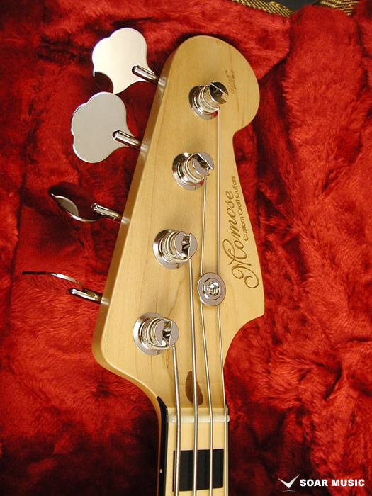 厳選された極上のマテリアルを使用し、技術力を認められたクラフトマンにより丁寧にハンドメイド製作されている “MOMOSE Vintage(モモセ・ヴィンテージ)”ラインナップより、ジャズベースタイプの限定スポット製作モデル MJB1-BBP/Mモデルのご紹介です。リアピックアップが少しブリッジに寄りに取り付けられた70'sスタイルの仕様を基に、ボディにはアルダー材を使用しており、アルダーらしい豊かな中低音域を特徴にしつつも、よりタイトでメリハリのあるサウンドです。また、ボディカラーと合わせたブラックポジションマークのカスタム仕様により、精悍なルックスに仕上げられています。