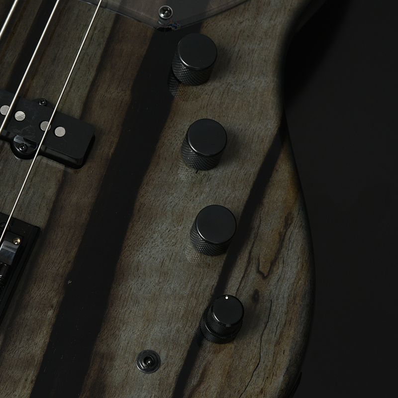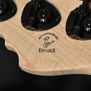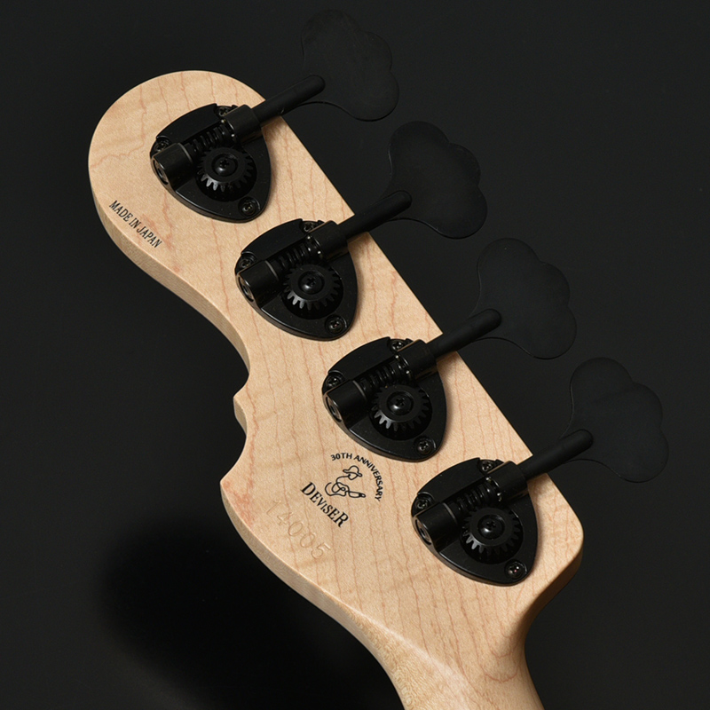 ネックにはフレイム杢の出た、メイプル材を使用することで、限定感を高めながらエボニー指板と組み合わせることで、アタック感とレスポンスの良いサウンドを作り出しております。