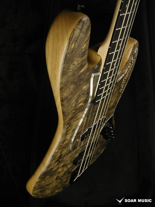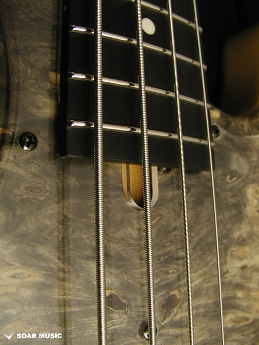 また、ブリッジは通常のジャズベースブリッジと同じトップローダー(表通し)での弦の張り方だけではなく、スルーボディ(裏通し)にも対応。