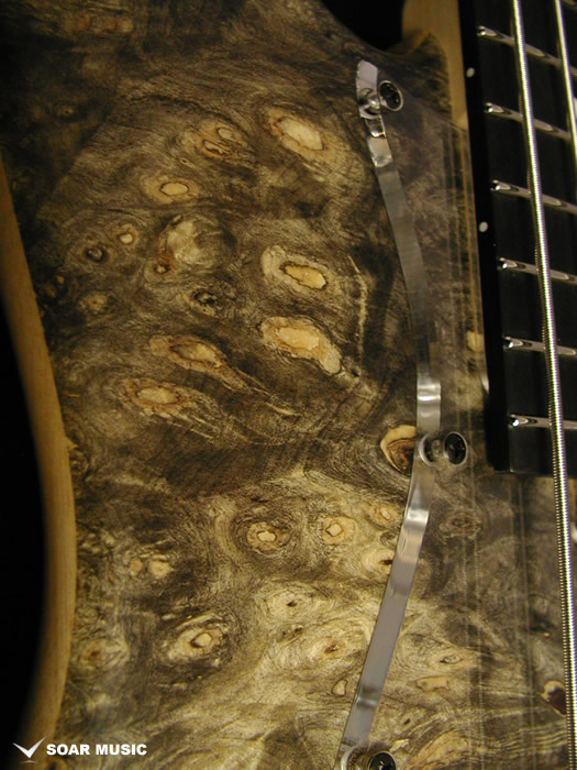 ボディトップには独特の色合いと、材全体的にBUCKEYE BURLの特徴がバランス良く出た材を現地で選定して使用していただきました。